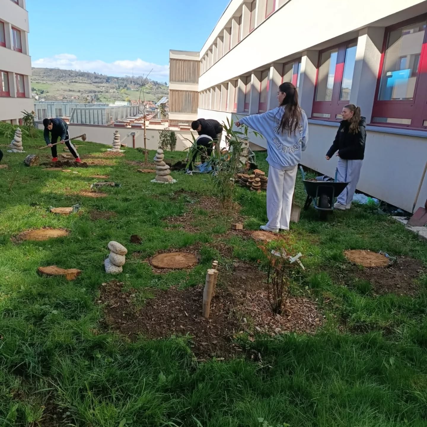 Un immense merci aux personnels et aux élèves qui ont uni leurs forces pour faire sortir de terre ce magnifique projet. 🙌 Ce jardin a pu voir le jour grâce au soutien des fonds académiques dédiés aux projets Vie Scolaire. 🏛️💡 Hâte de vous voir bientôt profiter de cet espace de sérénité !