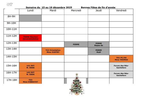 Planning du CDI semaine du 15 au 19 décembre 2025