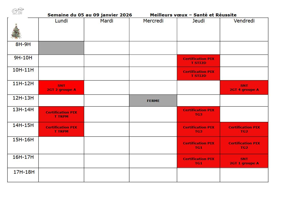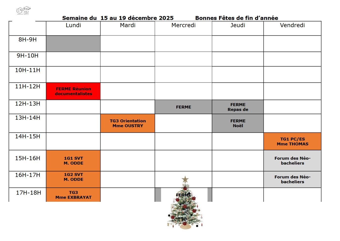 Planning du CDI semaine du 5 au 9 janvier 2025