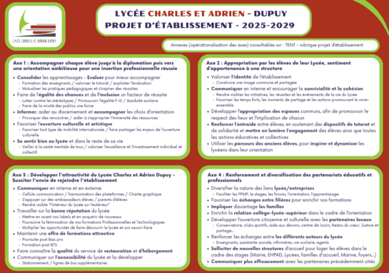 Projet d'établissement 2025-2029 fait suite à l'évaluation du lycée menée en 2024-2025.