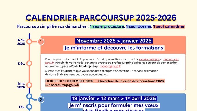 Calendrier de l'orientation 2025-2026Par MARTINE LE BIGOT, publié le vendredi 17 octobre 2025 08:38 - Mis à jour le vendredi 17 octobre 2025 08:38Les dates de l'orientation à noter dans son agenda !